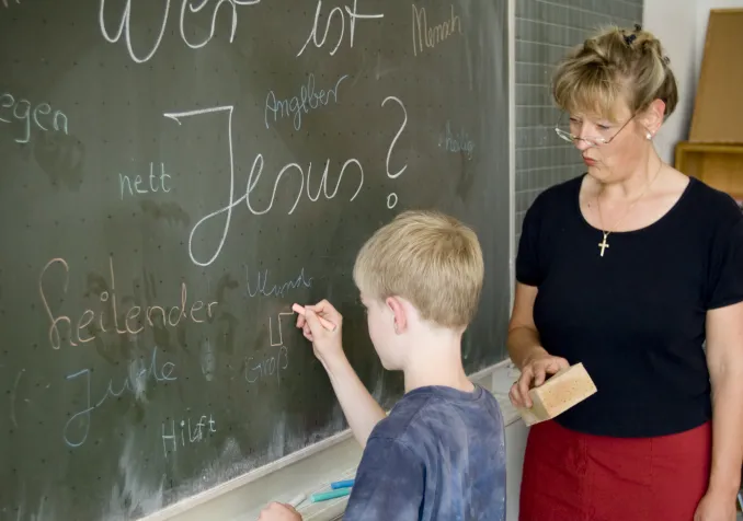 Après quelques minutes de cet exercice, les enfants mettent en commun les connaissances ainsi glanées. L’institutrice rappelle les acquis déjà assimilés lors de leçons précédentes. Sur la base des images, elle approfondit les pratiques et les symboles des trois monothéismes. Les élèves distinguent les éléments avec perspicacité, se souvenant des signes déjà rencontrés, rappelant des récits évoqués.